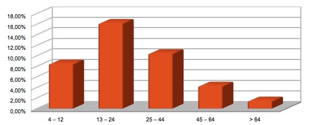 El programa, sin embargo, muestra su mayor esplendor analizando las franjas horarias en las que compite cara a cara con la competencia. 'Otra movida' alcanza su máximo en la audiencia que se encuentra en los 13 y los 24 años con un 16,1% de cuota, sólo superado por el 19,1% de 'Sálvame' en esta franja de edad.